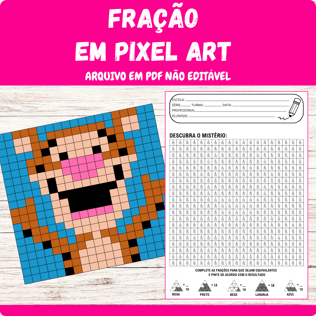 As frações são um desafio para muitos alunos? Que tal desvendar seus mistérios de uma forma que eles nunca imaginaram? Apresentamos Fração em Pixel Art um recurso pedagógico inovador que une a magia da pixel art com o ensino fundamental da matemática. São 30 desenhos exclusivos em Pixel Art com e sem cabeçalho.